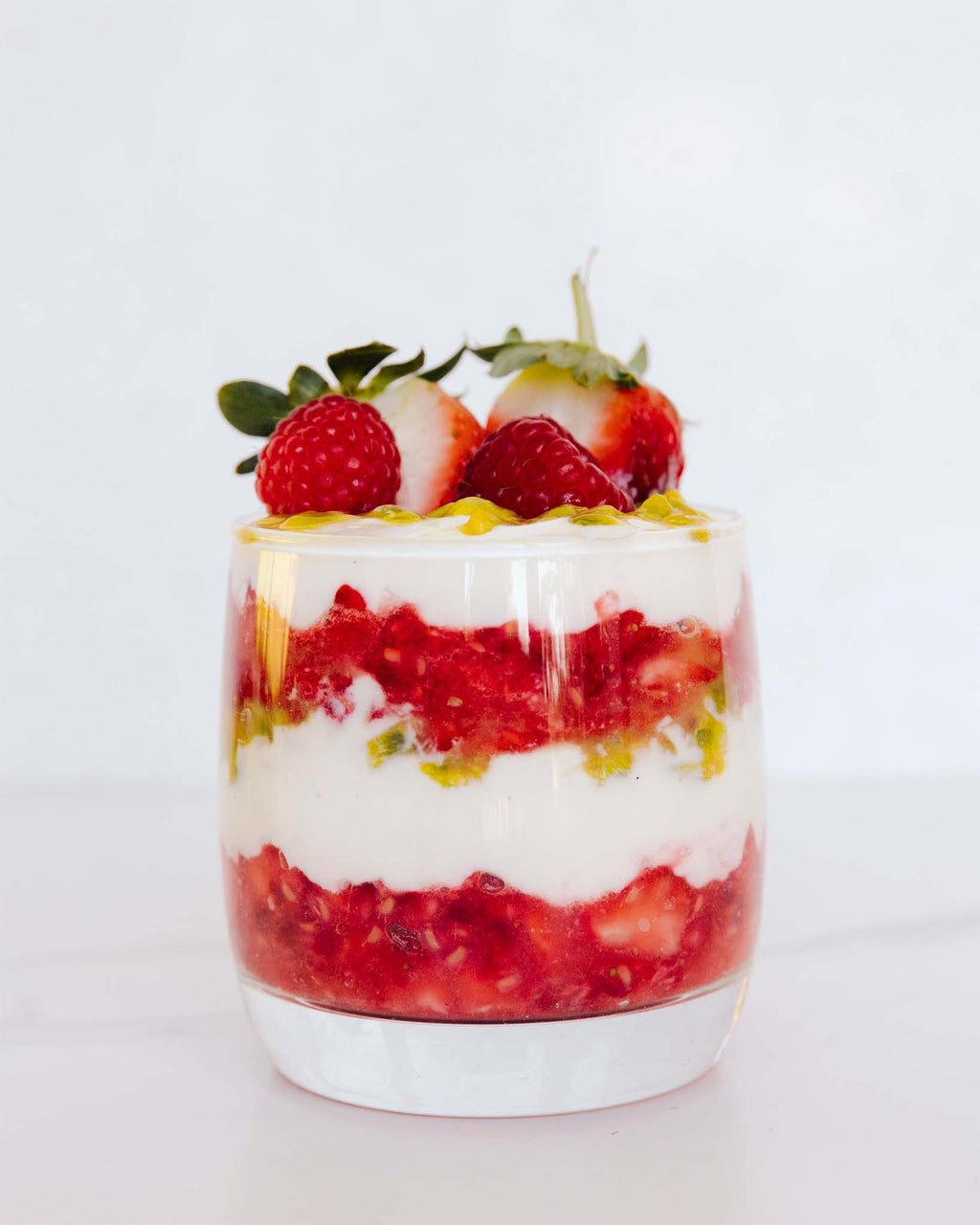 Fruity and fresh is on the menu with the warmer weather on our doorsteps. Perfect timing for a Dairy Free Fruity Mousse Parfait, and one that will be sure to impress even the toughest of in laws, critical kids and masterchef partners. With loads of colourful fruits filled with antioxidants, some tofu (ps. you totally won’t taste this at all) for protein, amino acids and our Collagen Beauty