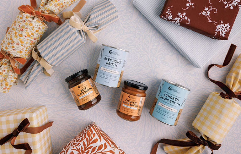 Our Bone Broth Concentrates have a rich flavour profile, meaning it’s great for soups, stews, gravies and cooking with a smaller amount needed. Our powder bone broths have a more delicate flavour profile. Our Beef Bone Broth Concentrates are also shelf stable and need to be used within 12 weeks from opening, whereas our Chicken Bone Broth Concentrates need to be consumed within 6 weeks after opening with refrigeration required. Our powders are better for travelling as they come in tins, are shelf stable and can be used up to 12 months from opening.