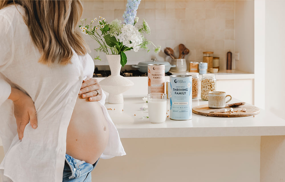 Our breastfeeding friendly protein powder Thriving Family is also pregnancy friendly and suitable. With 17 vitamins and minerals from pure wholefoods to help every member of the family thrive. Plus three delicious flavours to choose from for any flavour craving that hits. Use Thriving Family in smoothies and baking for delicious nutrition while on your pregnancy and breastfeeding journey.